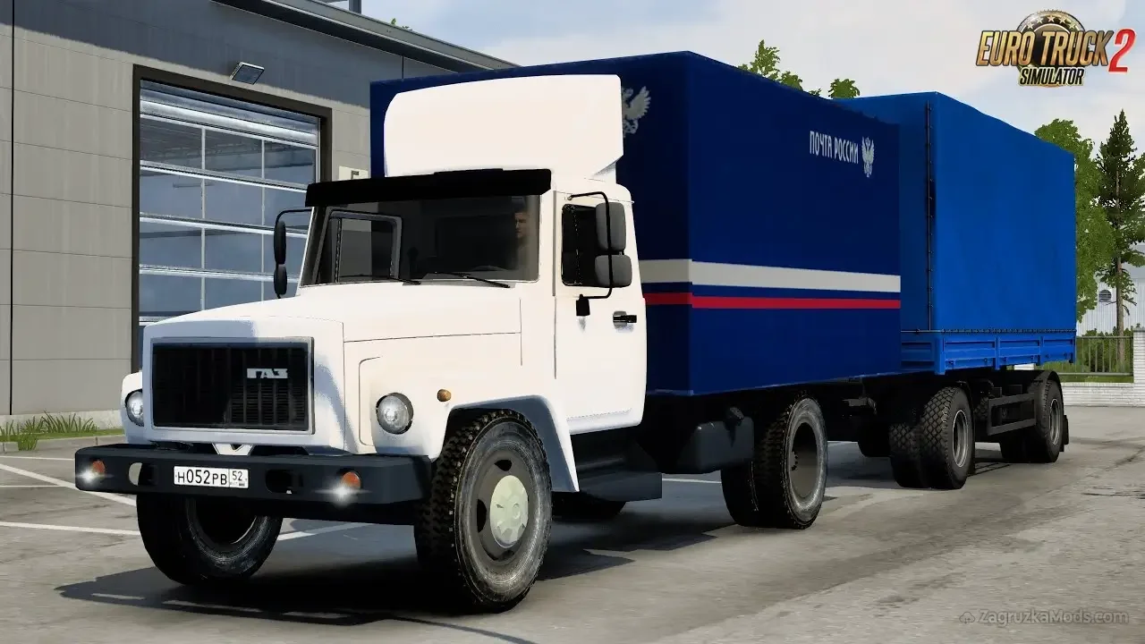 GAZ-3307/3308 ETS2 - high quality russian truck model in 2 version with own trailers, sound, interior and a very realistic physics. GAZ-3307 is a domestic truck with a carrying capacity of 4.5 tons, developed in the USSR in the mid-80s and entered into mass production two years before the collapse of the union. GAZ-3307 replaced the outdated but very popular GAZ-52 (53) truck, the fourth generation of GAZ medium-tonnage trucks got a new cab with chopped shapes, a V8 ZMZ-511 engine with 125 hp. and retained unpretentiousness to the quality of the road surface.