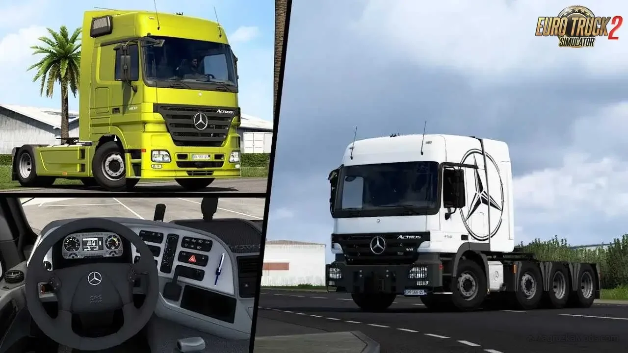 Mercedes-Benz Actros MP2 for ETS2ย - high quality truck model with custom changes provided by author ,,Dotec" for ETS2 players. The name "Mercedes-Benz" has stood for commercial vehicles of the highest quality for over 110 years. It was back in 1896 that Gottlieb Daimler sold the world's first truck. And at Mercedes-Benz Trucks we take pride in this history. It provides the standard and duty concerning everything achieved and crafted today and in the future under the aegis of the Star.