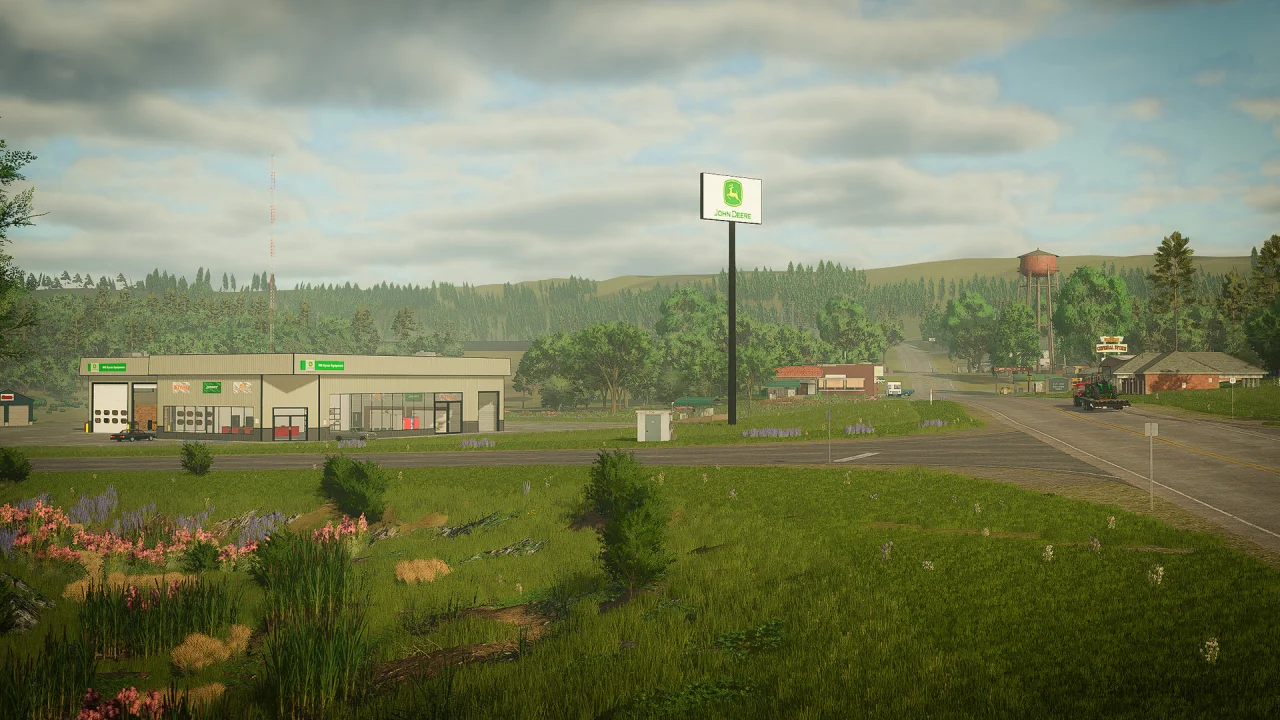 Small Town USA FS25 - is a detailed and immersive map set in a small town in the USA added for farmers players in FS25. It's a 1x map based on the "New Frontier" map by Ola Haldor and Maps of Norway. The map represents a typical small American town, showcasing elements like small businesses such as MB Dyson John Deere, Tractor Supply, and Dollar General, which are pivotal to the community's livelihood.ย