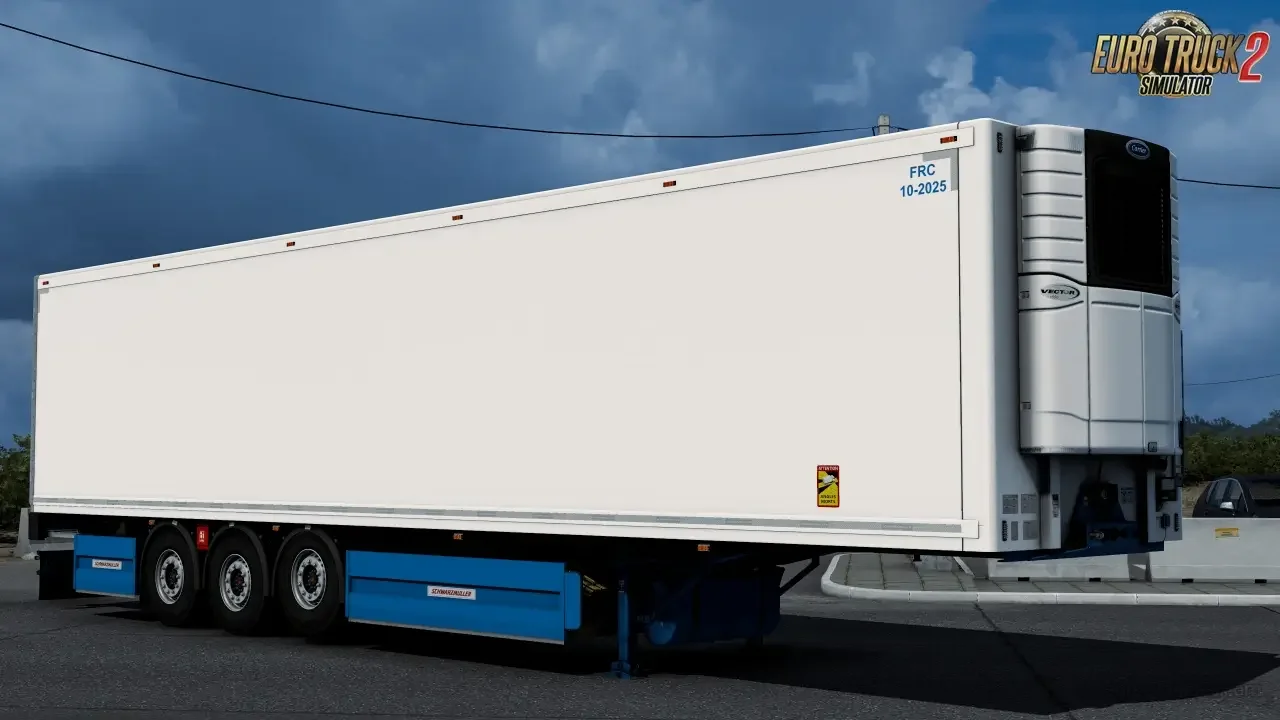 Schwarzmuller KOS T3/E for ETS2- brings a highly detailed and customizable standalone 3-axle refrigerated box-body semitrailer into the game.ย This mod adds a new trailer that doesn't replace any existing in-game trailers but is available for purchase separately, adding to the variety of transport options in ETS2. The Schwarzmuller KOS T3/E features some options to individualize it, different pallet boxes, mudflaps, different rear light options and more.