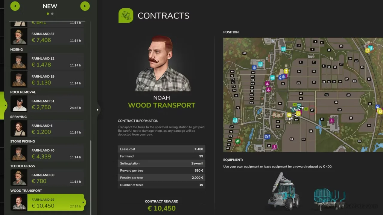 - Dynamic Contract Generation: The number and type of missions generated automatically adjust based on the number of fields on the map, making contracts more relevant to the game environment.