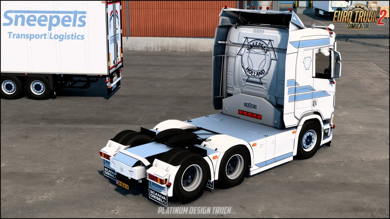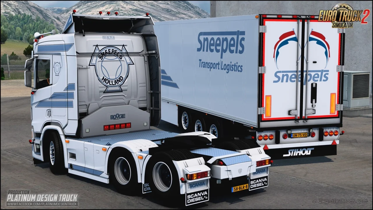Scania R500 Sneepels White for ETS2 - enhances the game with a customized Scania R500 truck and a matching trailer, both featuring the "Sneepels" white livery. This mod delivers a high-quality, immersive trucking experience with attention to detail in both aesthetics and functionality, making it a popular choice for players looking to haul in style with a personalized Scania R500 and trailer combo.