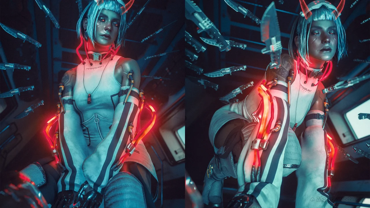 Venus Planet Techie Set - ย is a clothing mod for Cyberpunk 2077, designed exclusively for female V characters. Created by Peachu (PeachuHime) this mod introduces a stylish, tech-inspired outfit with extensive customization options. The mod is lore-friendly, fitting the neon-lit, high-tech vibe of Night City, and is designed to work with different body types through Archive XL.