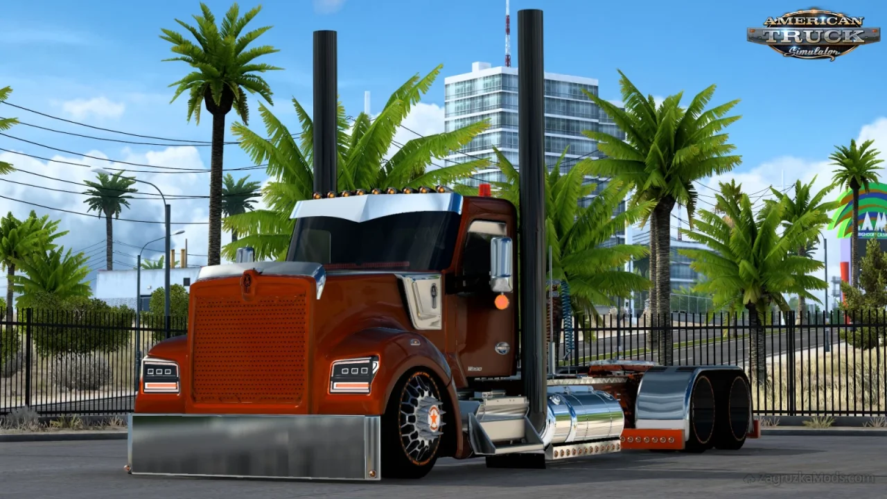 Alka Customs Trucks W990 for ATS - this iconic truck has been designed to perfection, with every little detail carefully crafted to provide an unparalleled trucking experience for ATS players. The truck is available in a range of bold colors, each one enhancing the overall look of the vehicle. The chrome accents and LED headlights add a touch of sophistication to the already impressive design.