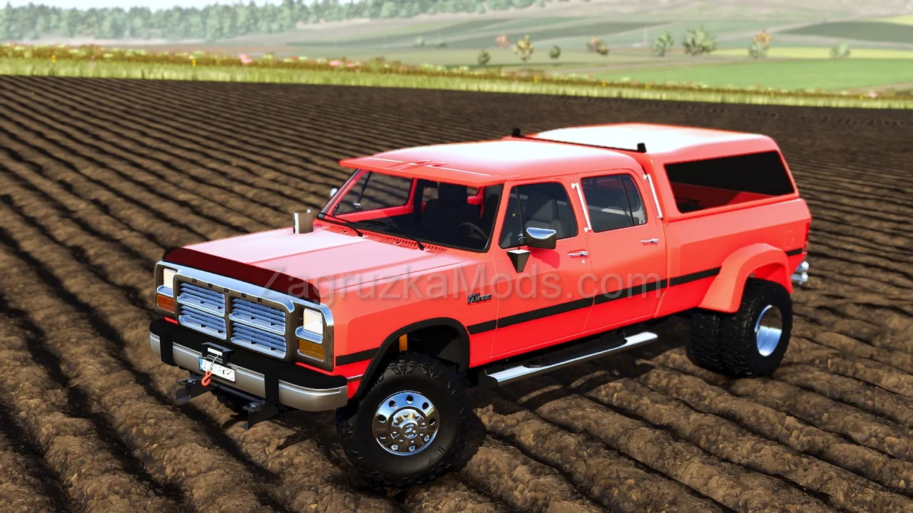 Dodge Ram D 250 Crew Cab 1992 for FS25 - is a detailed, customizable heavy-duty pickup truck, also known as the Club Cab, designed for robust farm tasks. Excels at hauling bales, 5th wheel trailers, or equipment across fields, with super-strength/super-force pickup capability. This mod is ideal for players seeking a powerful, versatile pickup with extensive customization for both practical farm work and aesthetic flair.