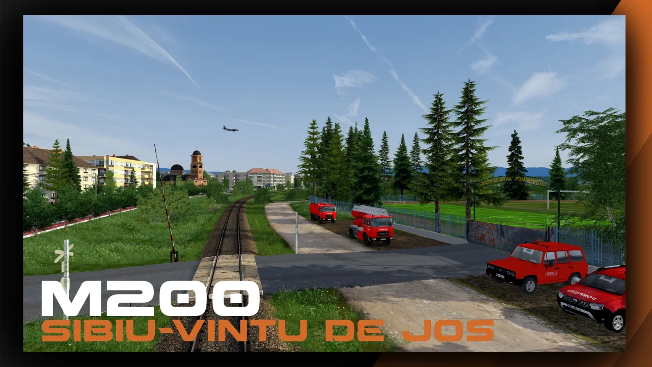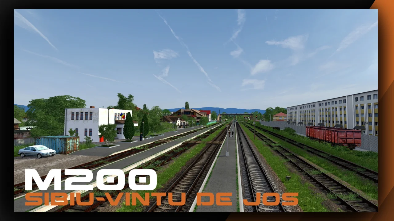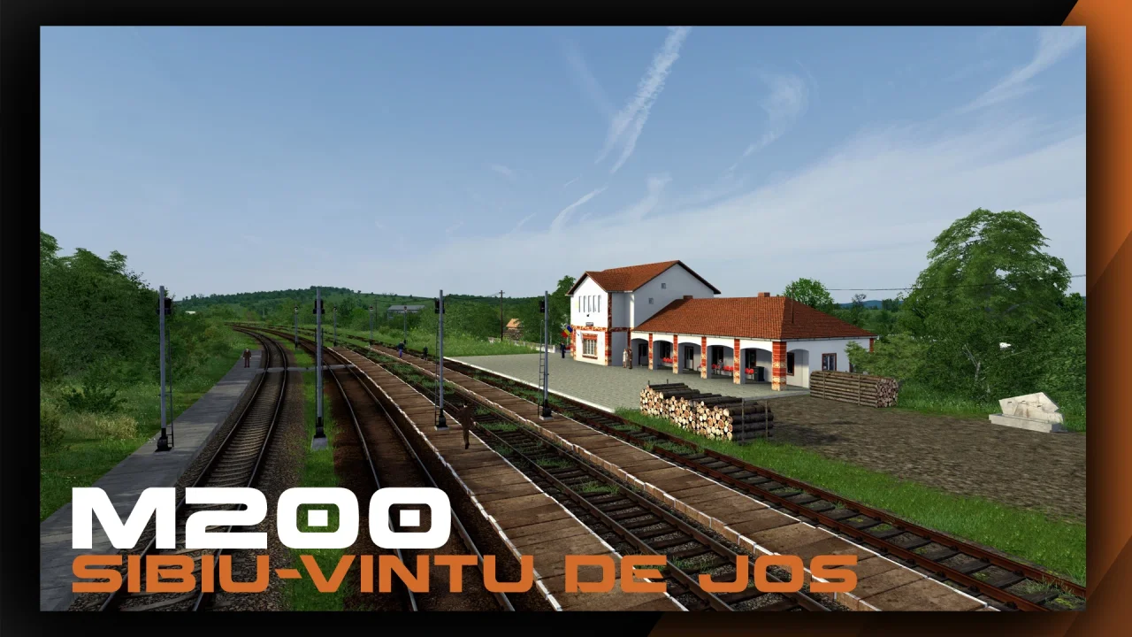 M200 Sibiu - Vintu De Jos Route -ย is a highly detailed add-on for Train Simulator Classic, developed by Rail-Forge, simulating an 83 km main railway line in Romania. Crossing the northern edge of the Southern Carpathians in southwest Transylvania, this picturesque route offers a mix of single and double tracks, non-electrified infrastructure, and stunning scenery, including viaducts, a curved tunnel, and dense forests.ย A highlight is the scenic stretch between Tiliศca halt and Apoldu de Sus, featuring five viaducts and a curved tunnel, showcasing engineering from the Vienna Engineering School. The route is non-electrified, making the diesel-electric LDE 2100 EGM locomotive an ideal choice for operations.