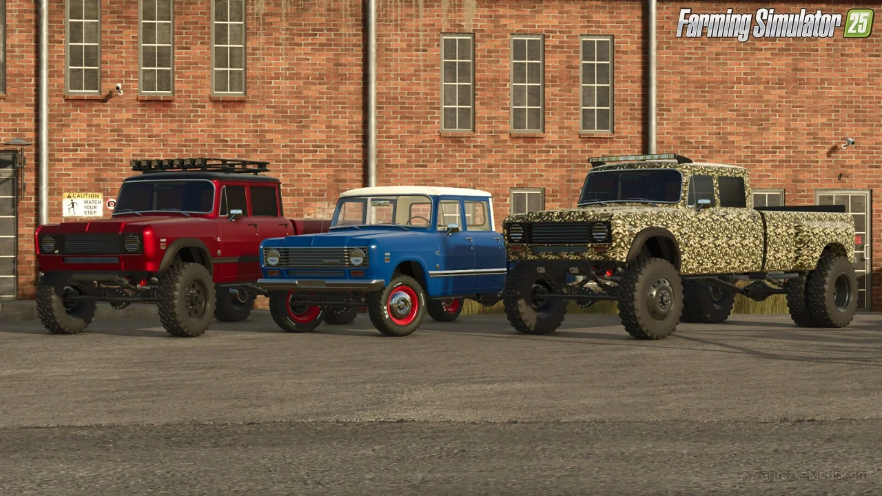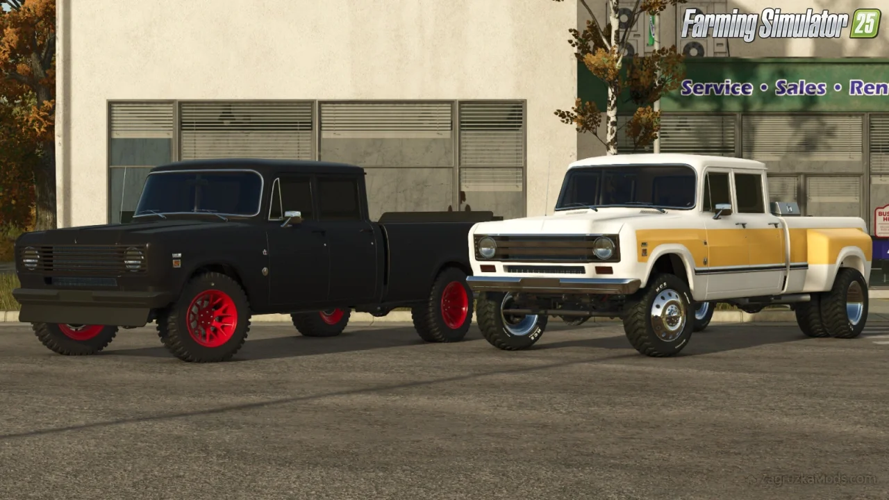 International Series 200 for FS25 - is a versatile, American-style truck inspired by classic and modern heavy-duty pickups, tailored for FS25. It combines functionality with extensive customization options, making it ideal for players who want a reliable vehicle with a personalized aesthetic. The mod is available in multiple versions, including standard and HD (Heavy Duty) variants, with some editions featuring unique designs like a "grandfather's project" build using parts such as a flatbed truck axle and Dodge 1st Gen Ram fender flares.