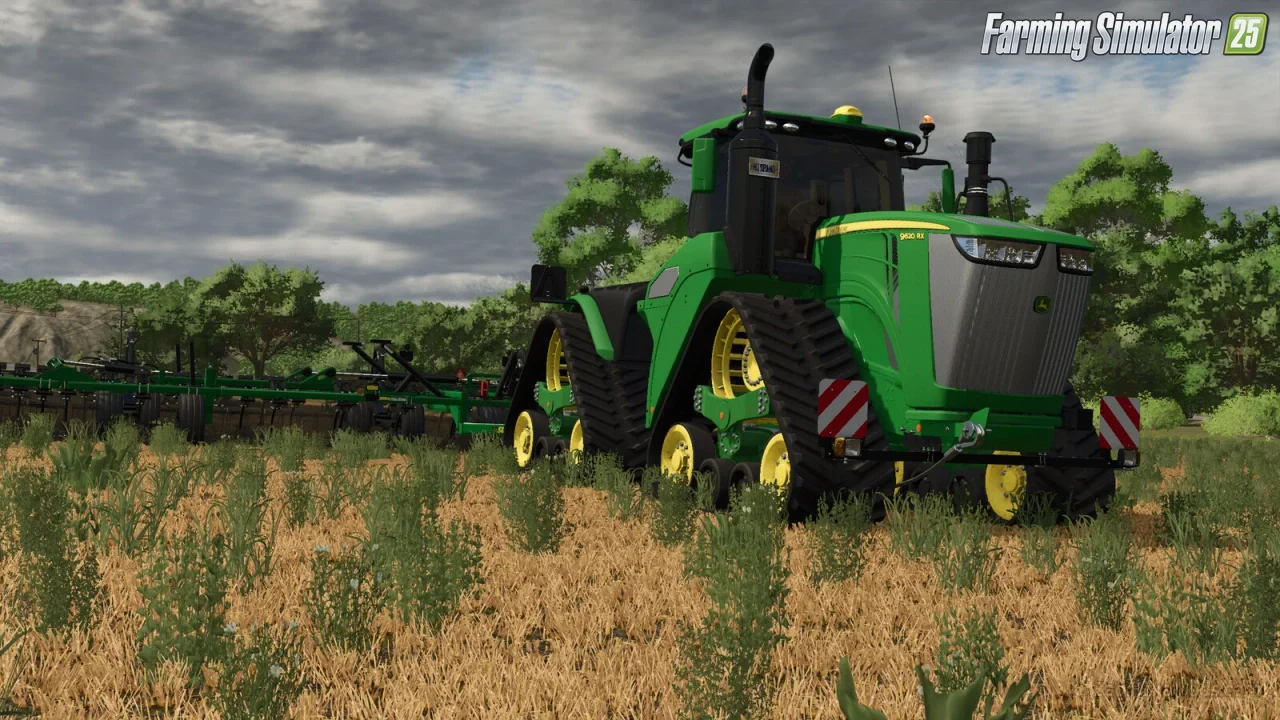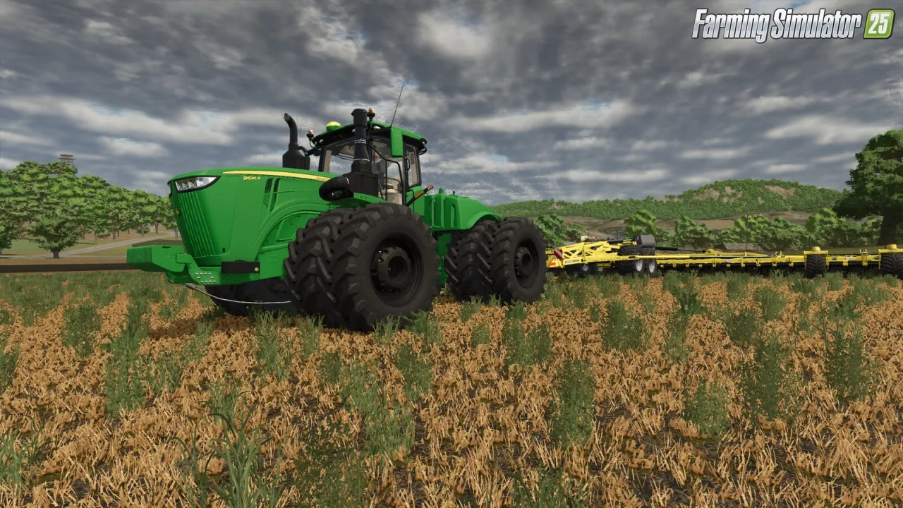 John Deere Series 9R/9RX for FS25 - adds two high-performance large tractors, the wheeled 9R and tracked 9RX, designed for demanding agricultural tasks. The John Deere Series 9R/9RX tractors are modern, heavy-duty machines built for intensive farming operations. With power outputs ranging from 462 to 670 HP (and up to 830 HP in modified versions), they excel in plowing, cultivating, and towing large implements across expansive fields. Their advanced configurations and high cost reflect their premium performance.