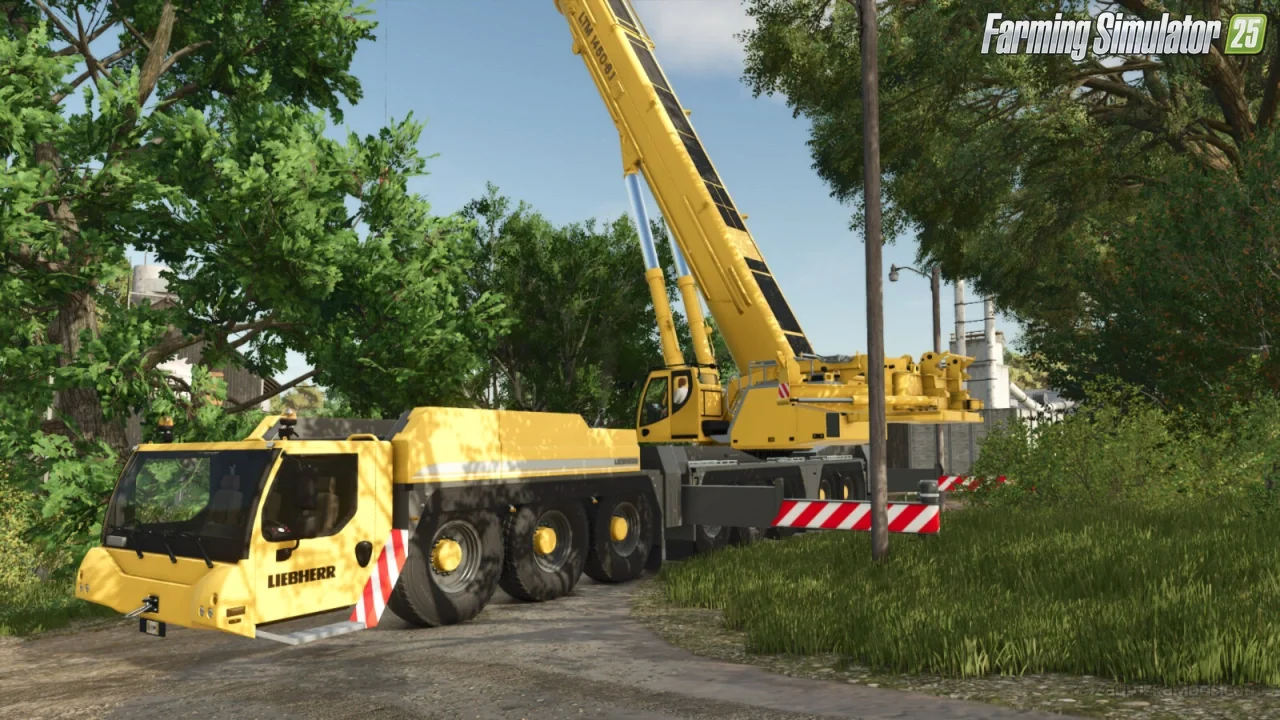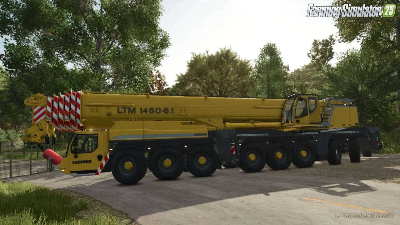 Liebherr LTM1450 Mobile Crane for FS25 - is a large, fast-erecting crane with a powerful 7-piece, 85-meter (279 ft) telescopic boom, ideal for handling complex lifting tasks such as moving containers, heavy equipment, or big bags. Designed for cost-effective mobility, it can travel on public roads with a 12-tonne axle load while carrying its full telescopic boom, outriggers, and hoist winch, allowing quick setup on-site.