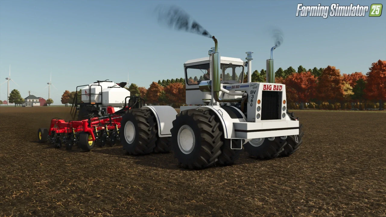 BigBud Series 2 Tractor for FS25 - that recreates the iconic articulated 4WD tractors from the Big Bud Series 2 lineup, originally produced between 1977 and 1978. These massive machines were designed for heavy-duty farming tasks, featuring a unique articulated frame for superior maneuverability and power delivery in large-scale operations. The mod includes multiple variants based on historical engine configurations, allowing players to choose from different horsepower options suitable for towing large implements across expansive fields.