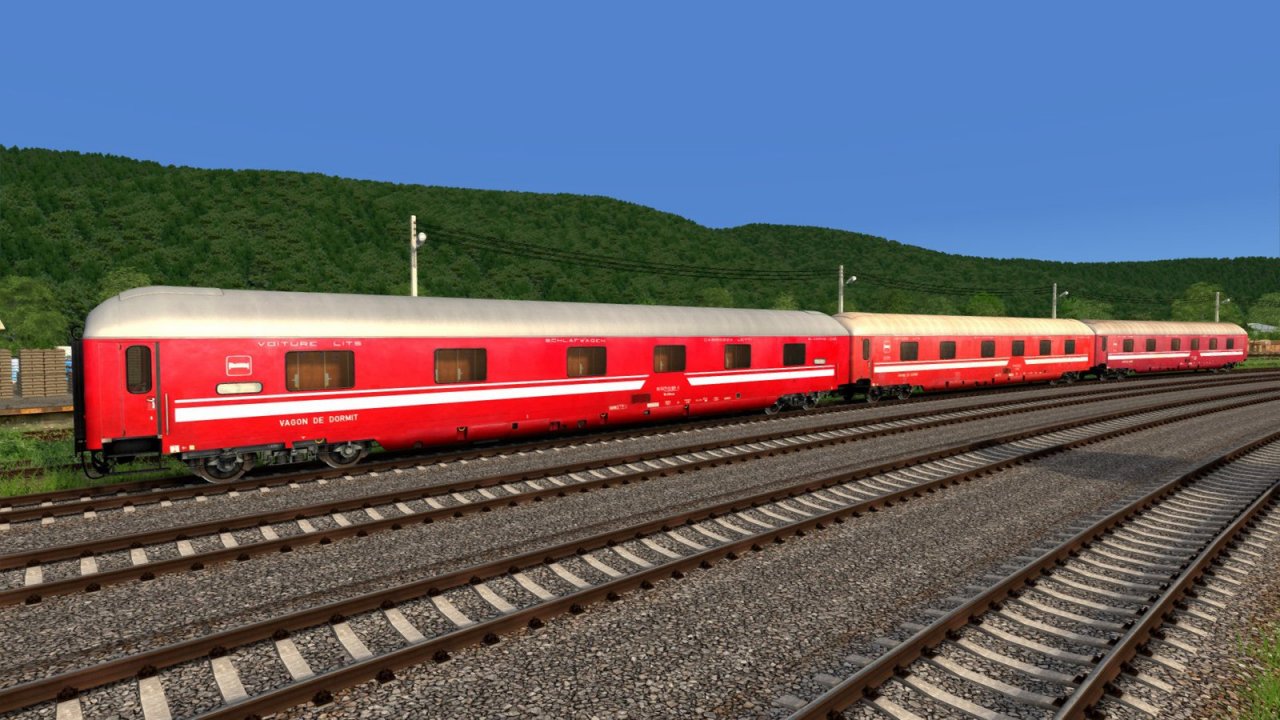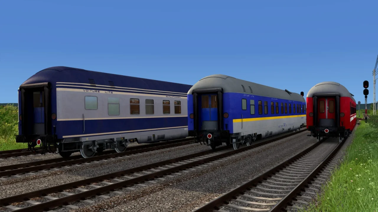 Hansa Sleeping Cars Pack for TSC -ย is a payware add-on developed by RailStudio for Train Simulator Classic. It features a collection of Romanian sleeping cars manufactured by Hansa, designed for night train services operated by CFR (Cฤile Ferate Romรขne). The pack includes 10 detailed models of type 71-31 WLABmee sleeping cars, available in three distinct liveries: red, blue/grey, and dark blue/grey. These cars are based on real prototypes used in Romanian rail operations and can be used to create authentic international or domestic night train consists.