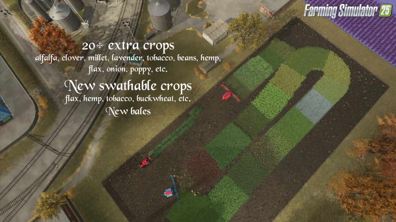 Riverbend Springs Multifruit for FS25 - an expertly crafted enhancement by Jinkou89 that expands crop diversity, refines production chains, and boosts profitability for immersive, large-scale American farming operations. Retaining the original map's scenic riverside fields, forests, and infrastructure while integrating over 25 new crops like flax, rye, quinoa, chickpeas, alfalfa, miscanthus, onions, peanuts, white grapes, lavender, hemp, and tobacco, this mod delivers realistic growth calendars, balanced pricing, and specialized harvesting mechanics such as swathing certain grains for 25% yield bonuses or using spinach harvesters for tobacco.