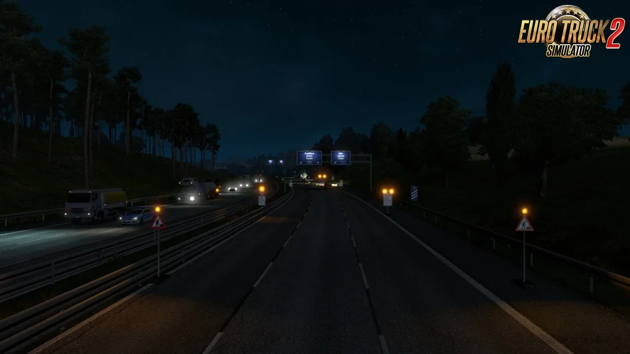 Traffic Environment for ETS2 - with this mod you can improve many in-game textures and give the game a new look. In addition, the mod includes many revisions to signs or traffic lights. Whether you drive at night or during the day, you will always be able to clearly see the signs. This mod is ideal for players who want a refreshed look and feel for their virtual trucking adventures, making the roads of Europe more vibrant and lifelike.