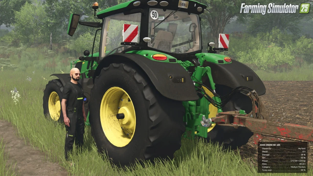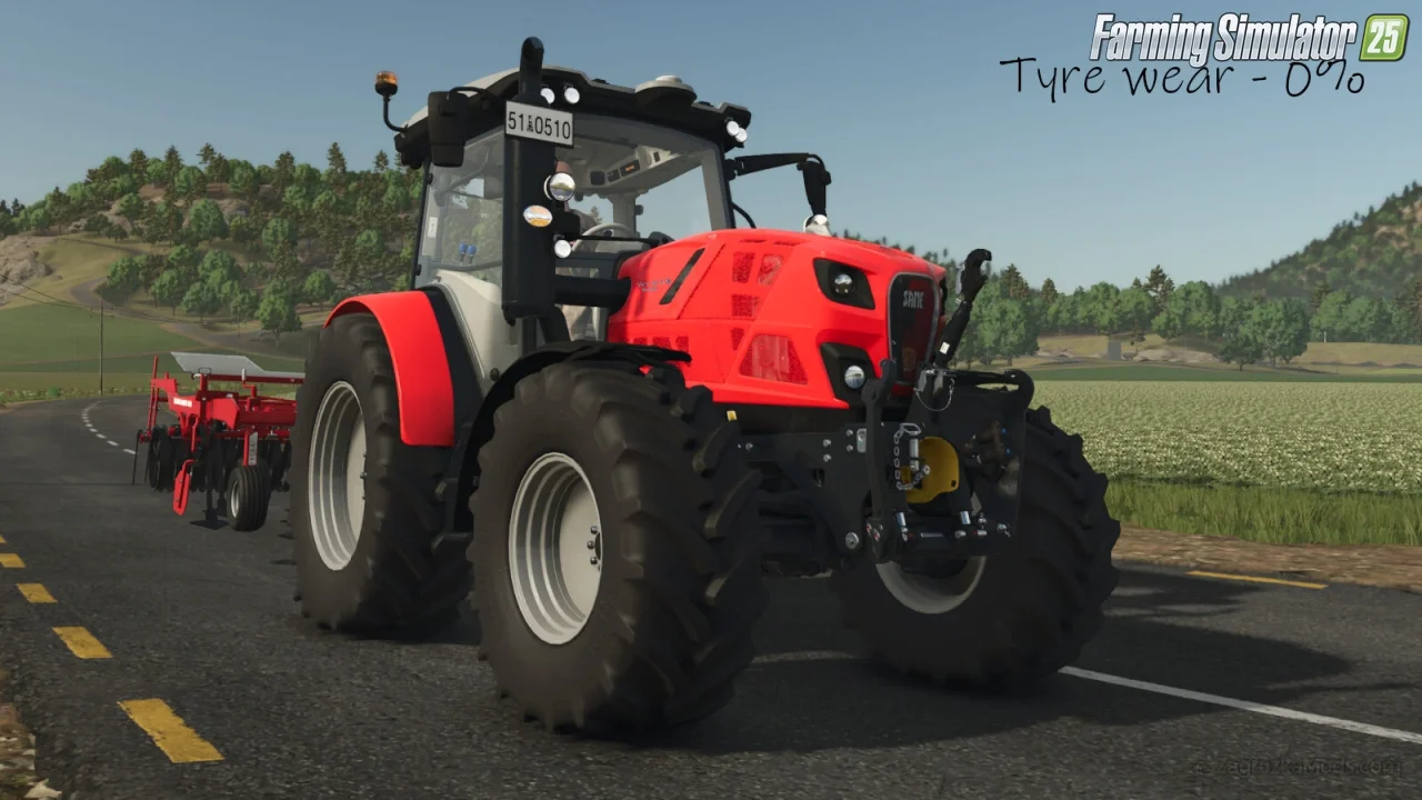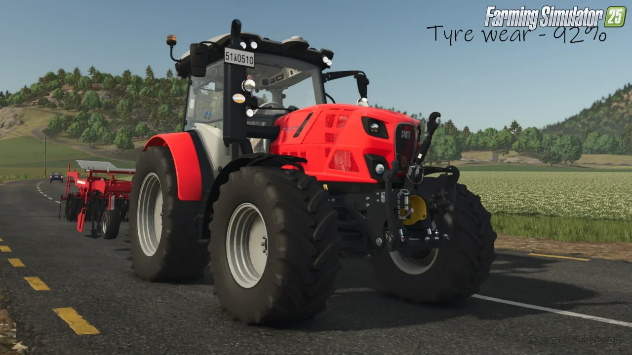 Use Up Your Tyres By 50keda for FS25 - enhances the realism of vehicle maintenance by introducing a dynamic tyre wear system. It simulates the visual and physical degradation of tyres based on distance traveled, adding depth to driving and maintenance gameplay. The mod takes your driving experience and vehicle maintenance to a new level by allowing you to experience the progression of tyre wear, both visually and functionally. Tyres wear down as you drive, affecting their appearance and performance, and players must manage their replacement through workshop mechanics. By default, a tyre with a 2-meter diameter will wear out after approximately 38 km of travel, roughly equivalent to one in-game year under normal vehicle use.